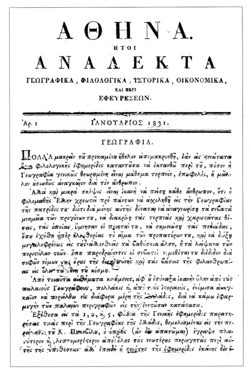 Αθηνά ήτοι Ανάλεκτα Γεωγραφικά, Φιλολογικά, Ιστορικά, Οικονομικά και περί Εφευρέσεων