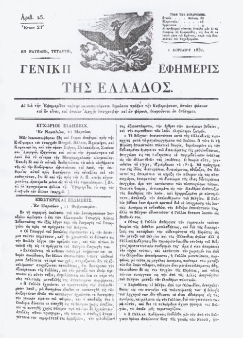 Γενική Εφημερίς της Ελλάδος, Ναύπλιο,1η Απριλίου 1831.