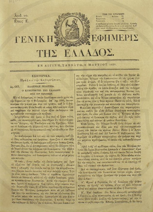 Γενική Εφημερίς της Ελλάδος, Αίγινα, 8 Μαρτίου 1830.