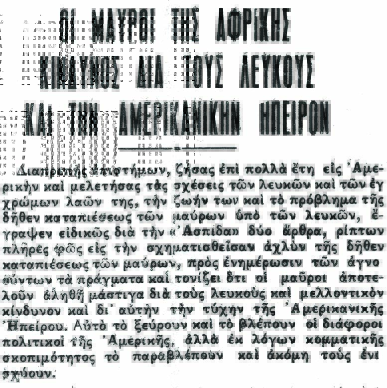 Οι μαύροι της Αφρικής κίνδυνος δια τους λευκούς και την αμερικανικήν ήπειρον…