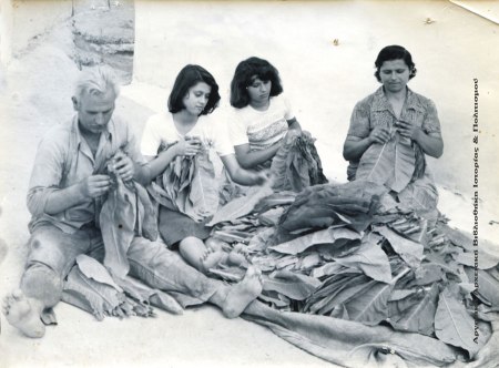 Το βελόνιασμα του καπνού ήταν πολύ κουραστική δουλειά, πιο πολύ για τα παιδιά. (Αρχ. Γ. Καραμάνου). Δημοσιεύεται στο: «Στα χνάρια του χθες», Εκδόσεις Εκ Προοιμίου, Άργος, 2010.