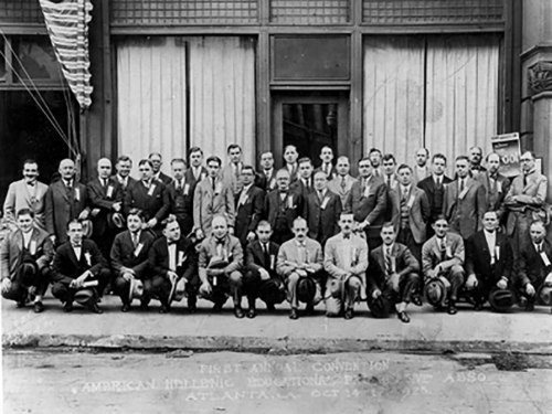 Τα μέλη της «Mother Lodge» και οι εκπρόσωποι των κεφαλαιούχων τραβούν την φωτογραφία τους στο πρώτο Ανώτατο Συνέδριο AHEPA, που πραγματοποιήθηκε στην Ατλάντα 14-17 Οκτωβρίου 1923.
