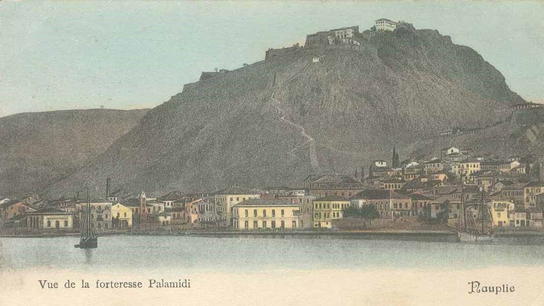 Επιχρωματισμένη καρτ ποστάλ του Ναυπλίου, γύρω στα 1900.