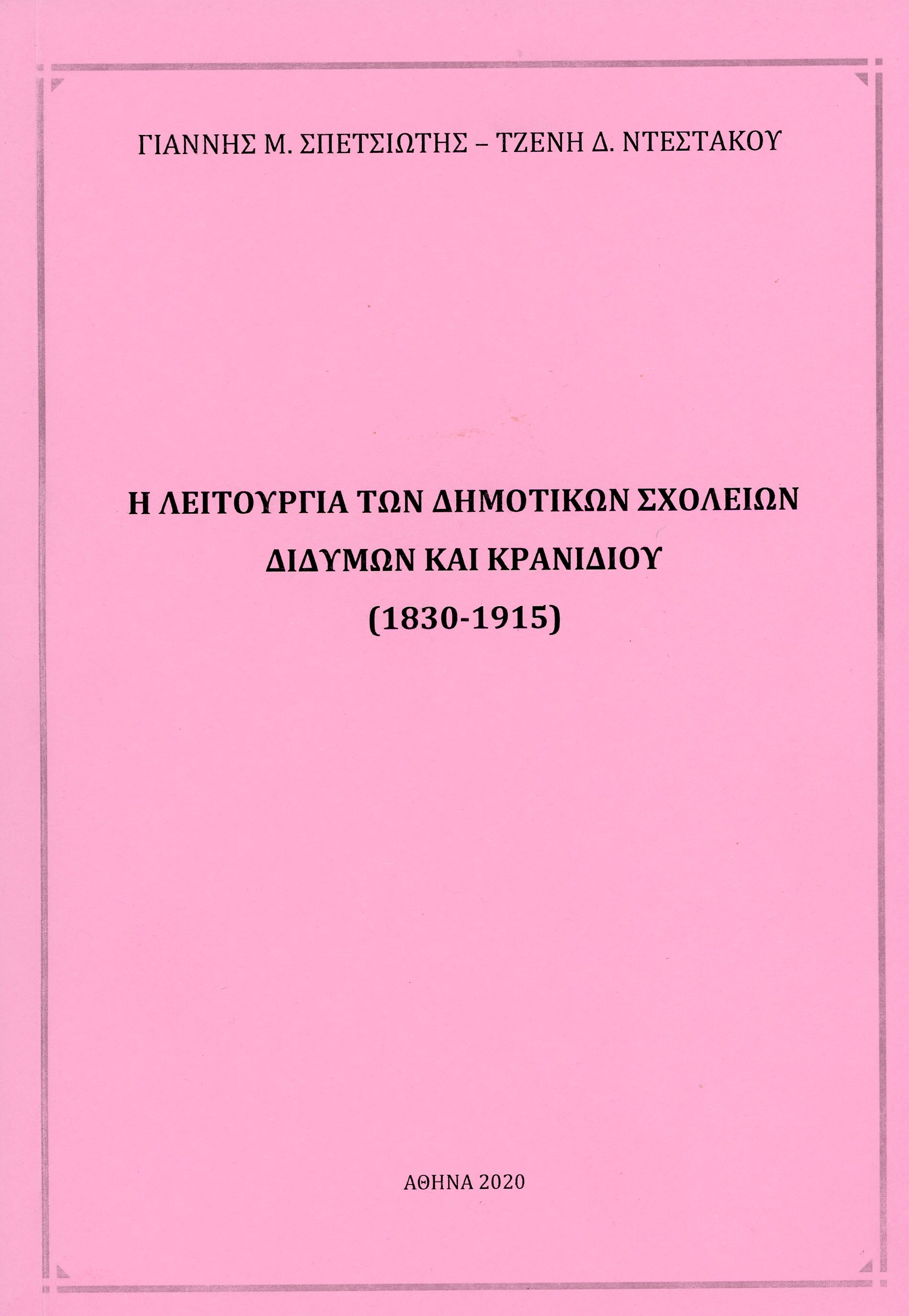 Γιάννης Μ. Σπετσιώτης – Τζένη Δ. Ντεστάκου | Η λειτουργία των Δημοτικών Σχολείων Διδύμων και Κρανιδίου (1830-1915) » Η λειτουργία των Δημοτικών Σχολείων