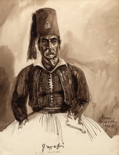 Ο Αρχιστράτηγος του 1821 Θεόδωρος Κολοκοτρώνης. Σχέδιο του Βέλγου διπλωμάτη Benjamin Mary (1792-1846), 1842. Δημοσιεύεται στο: «Η ιστορία έχει πρόσωπο: Μορφές του 1821 στην Ελλάδα του Όθωνα από τον βέλγο διπλωμάτη Benjamin Mary».