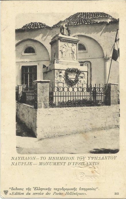 Καθοριστική επίσημη αναφορά για τον πλάτανο γίνεται αρκετά χρόνια αργότερα στις 13 Μαΐου 1843 στο λόγο που εκφώνησε ο καθηγητής του Γυμνασίου Χαρ. Παμπούκης κατά την τελετή μεταφοράς των οστών του Δημ. Υψηλάντη από τον Άγιο Γεώργιο και την εναπόθεσή τους στην πλατεία του Πλατάνου, στο λαμπρό ταφικό νεοκλασικό μνημείο, που είχε ιδρυθεί μπροστά στο τζαμί – Τριανόν, το αλληλοδιδακτικό σχολείο με τα ακόλουθα λόγια: «Σοι ω φίλε πλάτανε, παρακατατιθέμεθα ταύτα ανδρός αγαθού λείψανα: Πλάτανε, ω πλάτανε! μάρτυς της εν επαναστάσει εθνικής δόξης μας, αστυγείτων εφέστιε του Βουλευτικού και Εκτελεστικού μας, ρητορικόν βήμα και Πνύξ της νέας Ελλάδος ω πλάτανε! ούτως, ως οι άνδρες του αγώνος, εγήρασες και σύ και απέθανες, αλλά δεν εμηδενίσθης διόλου, διότι, ως η νεολαία της Ελλάδος, ανεβλάστησαν περι σε ούτοι οι νεόφυτοι πλατανίσκοι…» (Λαμπρυνίδης 1975, 330).