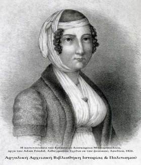 Η καπετάνισσα του Εικοσιένα Λασκαρίνα Μπουμπουλίνα, έργο του Adam Friedel. Λιθογραφία. Σχέδιο εκ του φυσικού, Λονδίνο, 1824.