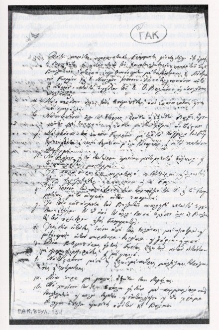 [48] Γενικά Αρχεία του Κράτους, Μικροί Κλάδοι, Βουλευτικόν Σώματα 1822 1827, φάκελος 1, αρ. εγγράφου 134. Το έγγραφο έχει δημοσιευτεί από τον Κ. Κ. Σπηλιωτάκπ, ό.π., και επαναδημοσιεύεται εδώ επιλεκτικά με βάσπ τη νέα μας ανάγνωση, με ελάσσονες αλλαγές.