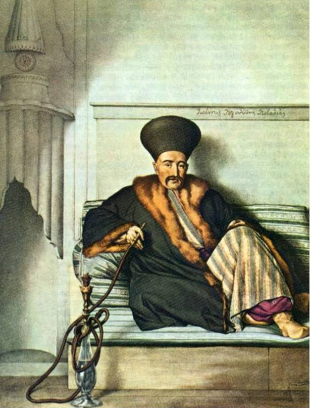 Κάπως έτσι ήταν οι σκηνές σύσκεψης «α λα τούρκα» που κατέγραψαν οι Ευρωπαίοι περιηγητές στο Εκτελεστικό του 1925. Εδώ, ο πρόκριτος της Λιβαδειάς Ιωάννης Λογοθέτης, σε πίνακα του Λουί Ντιπρέ, 1825.