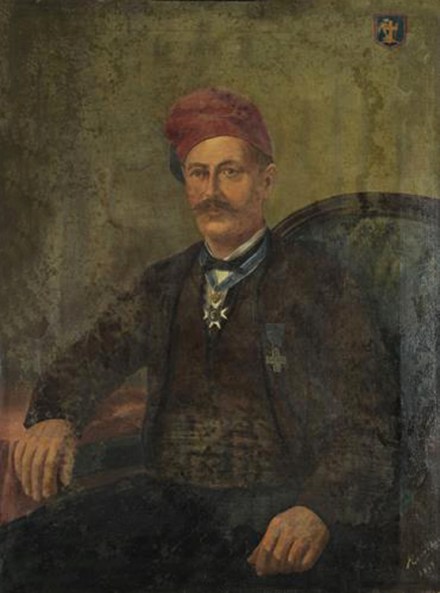 Προσωπογραφία του Δημητρίου Λάμπρου ή Λεωνίδα, ελαιογραφία σε μουσαμά, 1929. Εθνικό Ιστορικό Μουσείο.