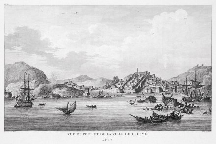 Το λιμάνι και η πόλη της Κρήνης (σημερινό Τσεσμέ). CHOISEUL-GOUFFIER, Gabriel Florent Auguste de. Voyage pittoresque de la Grèce, Παρίσι, J.-J. Blaise, M.DCC.LXXXII [=1782]. Συλλογή: Βιβλιοθήκη Ιδρύματος Αικατερίνης Λασκαρίδη.