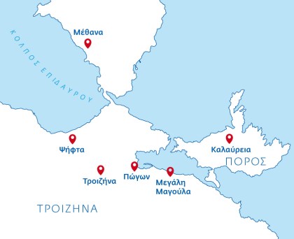Το επίνειο της Τροιζήνας Πώγων, άριστο φυσικό λιμάνι στο δυτικό άκρο του μεγάλου όρμου που σχηματίζεται ανάμεσα στην πελοποννησιακή ακτή και το νησί του Πόρου, ορίστηκε ως τόπος συγκέντρωσης του ελληνικού στόλου πριν από τη ναυμαχία της Σαλαμίνας. Κατά τη διάρκεια της περσικής εισβολής στην Αττική, ύστερα από ψήφισμα που πρότεινε ο Θεμιστοκλής το οποίο προέβλεπε την εκκένωση της Αθήνας για λόγους ασφάλειας των αμάχων, οι Τροιζήνιοι φιλοξένησαν πολλές αθηναϊκές οικογένειες, αναλαμβάνοντας όλες τις δαπάνες για τη διατροφή τους και για τη μόρφωση των παιδιών, όπως παραδίδει ο Πλούταρχος (Θεμιστοκλής 10.2-3). Το 479 π.Χ. η Τροιζήνα πήρε μέρος στη μάχη των Πλαταιών με 1.000 οπλίτες και το όνομά της αναγράφηκε στο τρόπαιο που ανατέθηκε στο ιερό των Δελφών σε ανάμνηση της νίκης των Ελλήνων. Τον ίδιο χρόνο οι ναυτικές δυνάμεις της συμμετείχαν στη ναυμαχία της Μυκάλης.