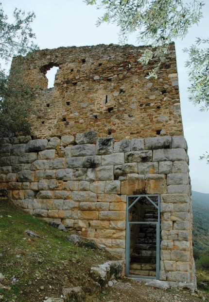 Στους πρόποδες της ακρόπολης σώζονται κάποια τμήματα από το εγκάρσιο τείχος που κατασκευάστηκε γύρω στο 146 π.X. για την ενίσχυση της άμυνας της πόλης στην αναμενόμενη επίθεση των Ρωμαίων. Στο τείχος αυτό έχει ενσωματωθεί ένας μεγάλος ορθογώνιος πύργος, ο οποίος είναι σήμερα το καλύτερα σωζόμενο μνημείο της Τροιζήνας, καθώς διατηρεί άθικτη την είσοδό του και την εσωτερική σκάλα που οδηγούσε στον επάνω όροφο. Την περίοδο της Φραγκοκρατίας ο πύργος ανακαινίστηκε για να ενταχθεί στο αμυντικό σύστημα του κάστρου του Δαμαλά.