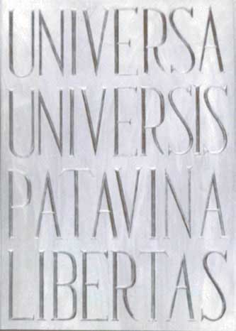 Universa Universis Patavina Libertas («Πλήρης και για όλους η Ελευθερία στο Πανεπιστήμιο του Παταβίου»). Το μόττο του Πανεπιστημίου.