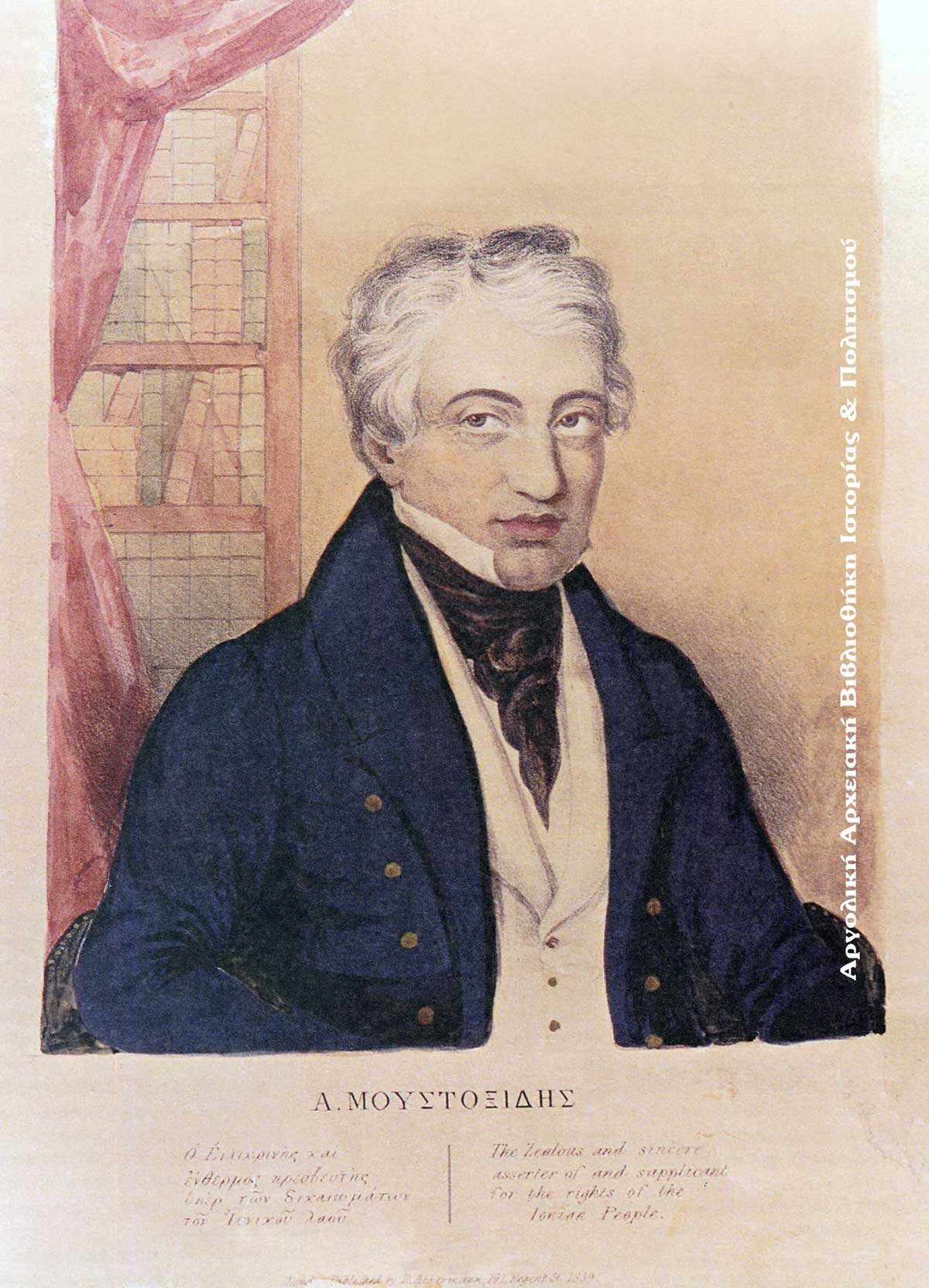 Ανδρέας Μουστοξύδης. Λιθογραφία, 1839.