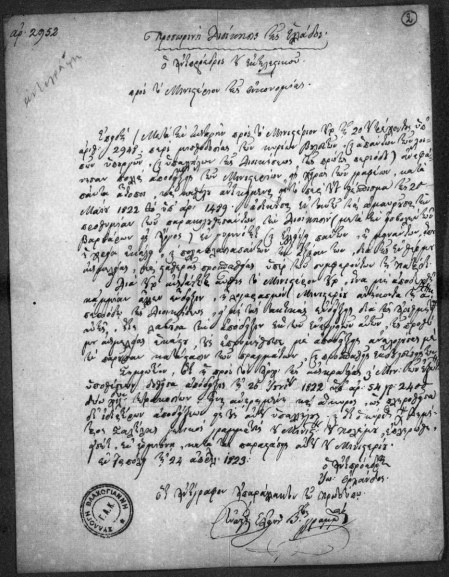 [26] Εφημερίς της Κυβερνήσεως του Βασιλείου της Ελλάδος, αρ. 35, εν Αθήναις, 2 Δεκεμβρίου 1844, σ. 208.