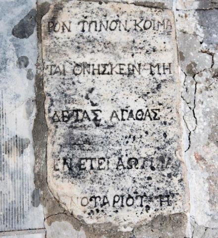 Στο εκκλησάκι των Αγίων Πάντων, γύρω του, βρίσκεται το παλιό νεκροταφείο της Πόλης. Στις ταφικές πλάκες εντοπίσαμε μία που ανέγραφε. «… ΥΠΝΟΝ ΚΟΙΜΑΤΑΙ ΘΝΗΣΚΕΙΝ … ΑΓΑΘΑΣ ΕΝ ΕΤΕΙ ΑΩΜΙΑ ΝΟΤΑΡΙΟΥ Η» (Α=1000, Ω=800, Μ=40, Ι=10, Α=1 συνεπώς 1851). Αν και είμαστε ακόμα στην αρχή της έρευνας και μπορεί να λανθάνω πρόκειται μάλλον για την ταφόπλακα του Αναστάσιου Ελαιών, που απεβίωσε ή τις τελευταίες μέρες του 1851 ή τις πρώτες του 1852, μας πληροφορεί ο συγγραφέας Νικόλαος Γεωργίου Τόμπρας.