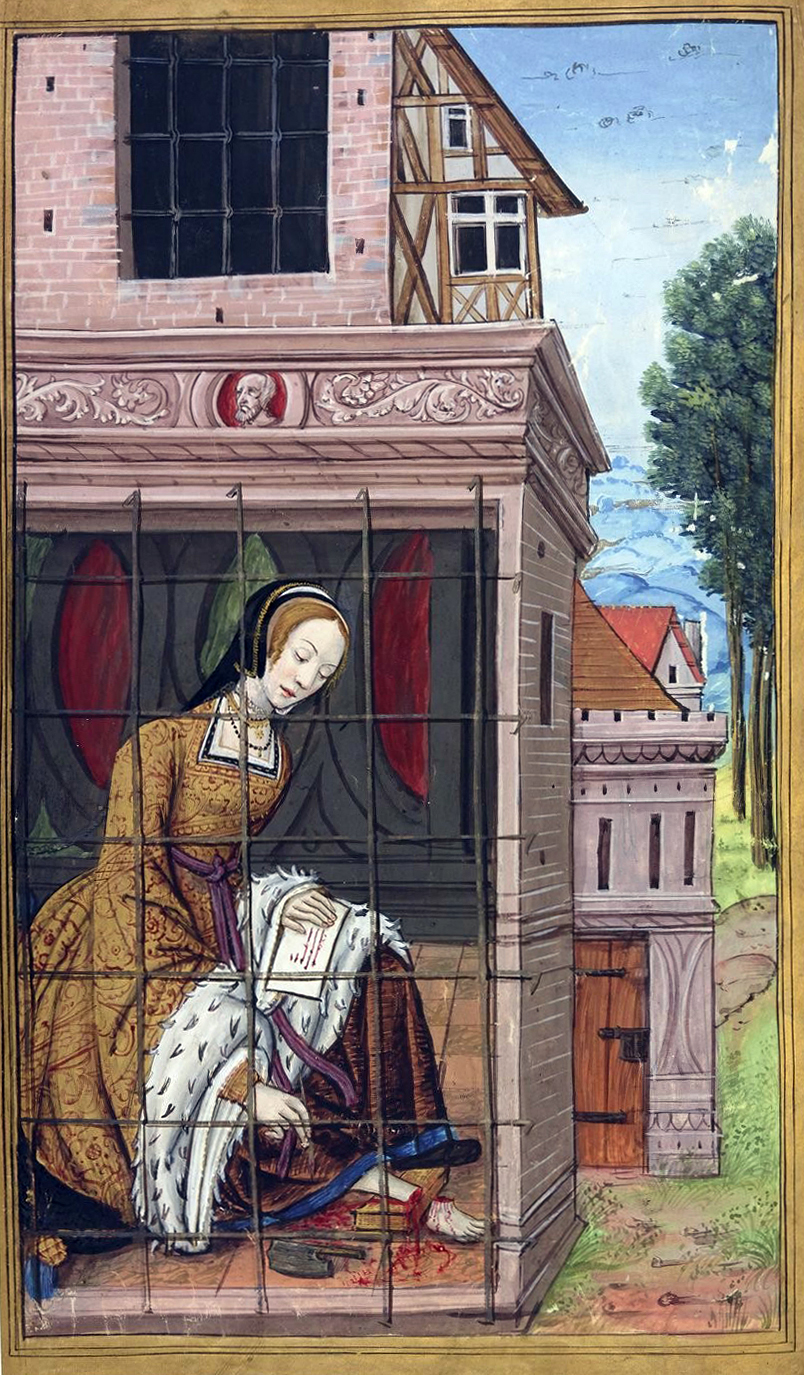 Η Υπερμνήστρα γράφει στον Λυγκέα. Hypermnestre écrivant à Lyncée. Miniature extraite des Epistres d’Ovide (Héroïdes), traduction d’Octavien de Saint-Gelais, 1496-1498. Bibliothèque nationale de France (BNF).