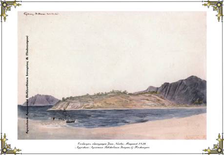 Επίδαυρος, υδατογραφία του Ζαν Νικολά Μακάρ (Jean Nicolas Maquart), 1829. Δημοσιεύεται στο: «Το ταξίδι του Συνταγματάρχη Jean Nicolas Maquart στην επαναστατημένη Ελλάδα (Πελοπόννησος 1828-1831)» – Γεώργιος Η. Κόνδης – Yves Ollivier.