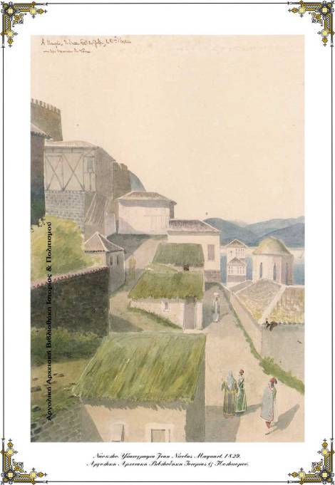 Ναύπλιο, υδατογραφίες του Ζαν Νικολά Μακάρ (Jean Nicolas Maquart), 1829. Δημοσιεύονται στο: «Το ταξίδι του Συνταγματάρχη Jean Nicolas Maquart στην επαναστατημένη Ελλάδα (Πελοπόννησος 1828-1831)». Γεώργιος Η. Κόνδης – Yves Ollivier.
