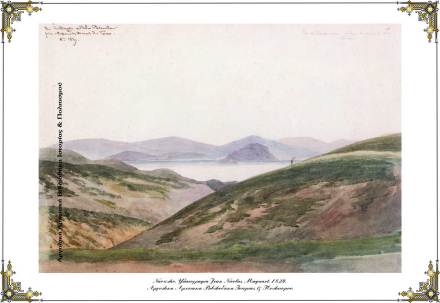 Ναύπλιο. Η πόλη αποτυπώνεται από τα τείχη της Τίρυνθας και διακρίνονται τα έλη της Γλυκιάς, το λιμάνι με πλοία, το Μπούρτζι και τα κάστρα τ’ Αναπλιού. Υδατογραφία του Ζαν Νικολά Μακάρ (Jean Nicolas Maquart), 1829. Δημοσιεύεται στο: «Το ταξίδι του Συνταγματάρχη Jean Nicolas Maquart στην επαναστατημένη Ελλάδα (Πελοπόννησος 1828-1831)». Γεώργιος Η. Κόνδης – Yves Ollivier.