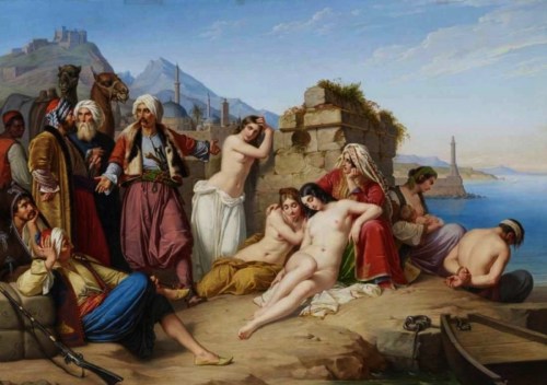 Το σκλαβοπάζαρο. Πίνακας του πρώτου μισού του 19ου αιώνα του Φιλέλληνα Γερμανού ζωγράφου Paul Emil Jacobs (1802-1866). Ο πίνακας παρουσιάζει σκηνή από σκλαβοπάζαρο Ελλήνων κατά τη διάρκεια της τουρκοκρατίας.