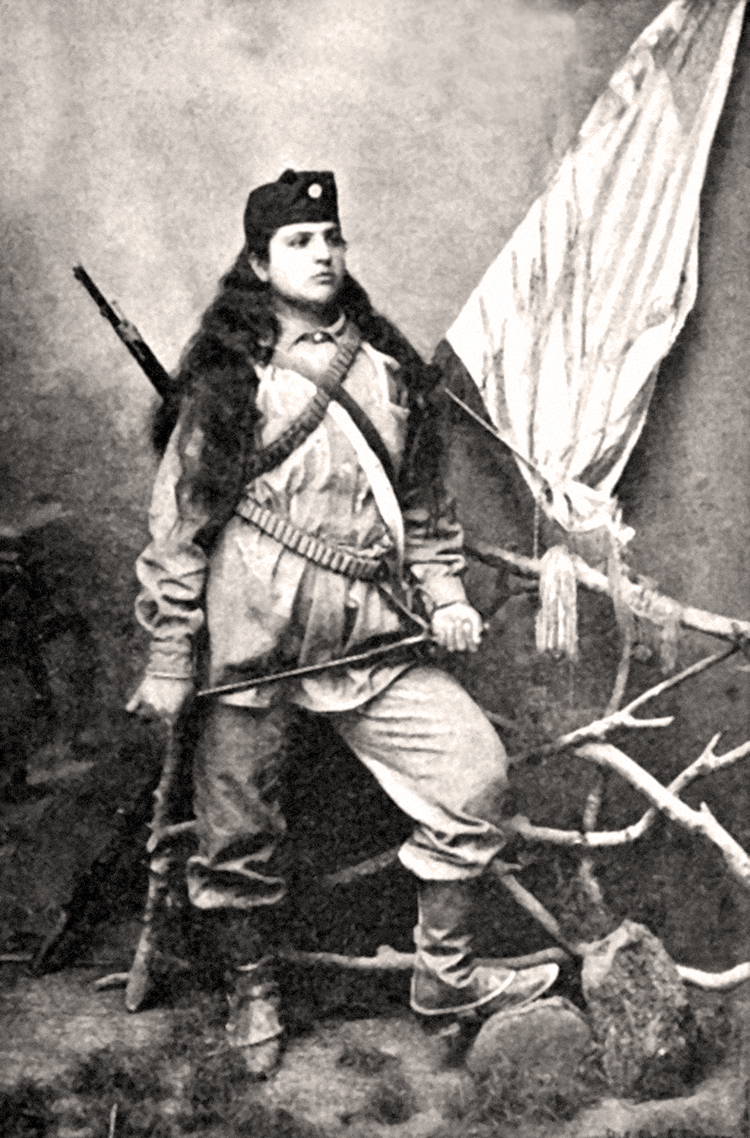 Η Ελένη Κωνσταντινίδη, για την οποία γράφει ο Ινχα ότι είχε σκοτώσει δύο Τούρκους όταν τη συνάντησε στη Βόνιτσα. Φωτ. I. K. Inha, «Hellas ja helleenit», 1987.