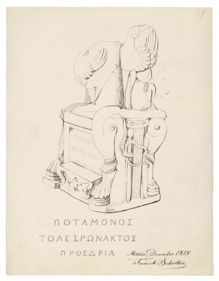 Σχέδιο με μελάνι υπογεγραμμένο από τον Frederik von Scholten της «προεδρίας» στη Μυτιλήνη στο νησί της Λέσβου – το οποίο είναι, μία τιμητική θέση στο αρχαίο θέατρο της πόλης. Το σχέδιο έχει διαστάσεις 18,5 x 24,5 cm.
