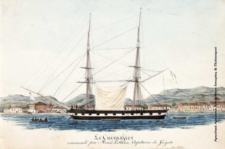 Το πλοίο Le Cuirassier, αγκυροβολημένο προς την πλευρά του λιμανιού άγνωστης πόλης. Frederik von Scholten, η ακουαρέλα είναι με ημερομηνία Δεκεμβρίου 1824.