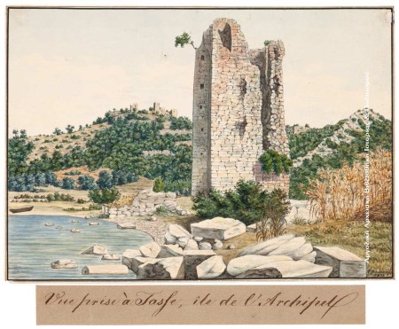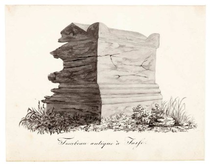 Δύο ρωμαϊκές σαρκοφάγοι που σχεδίασε ο von Scholten στη Θάσο. Ένα από τα σχέδια χρονολογείται στις 10 Σεπτεμβρίου 1824.