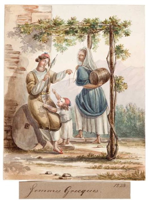 Ακουαρέλα με Ελληνιδες,1828, Frederik von Scholten.
