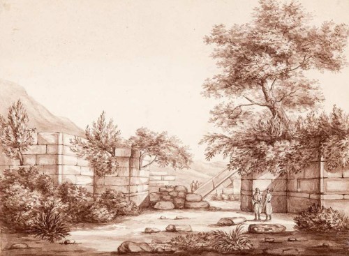 Η κατεστραμμένη πύλη στην πόλη της Μεσσήνης ζωγραφισμένη το 1828.