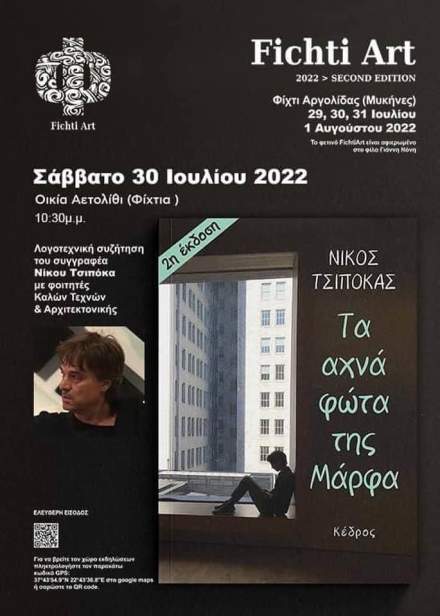 Fichti Art – Πολιτιστικά και εκπαιδευτικά δρώμενα. Φίχτια, Μυκήνες 29,30,31 Ιουλίου, 1 Αυγούστου 2022