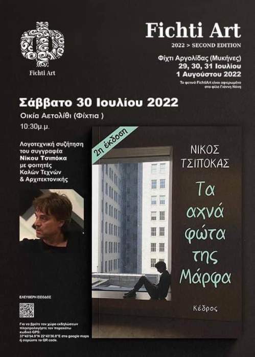 Fichti Art 2022 – Πολιτιστικά και εκπαιδευτικά δρώμενα » Λογοτεχνική συζήτηση με τον βραβευμένο συγγραφέα Νίκο Τσιπόκα.