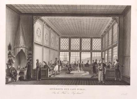 «Καφενείο στο Τοπ Χανέ» – Antoine-Ignace Melling: Voyage pittoresque de Constantinople et des rives du Bosphore (Paris, 1819) – Getty Research Institute Vol. II.