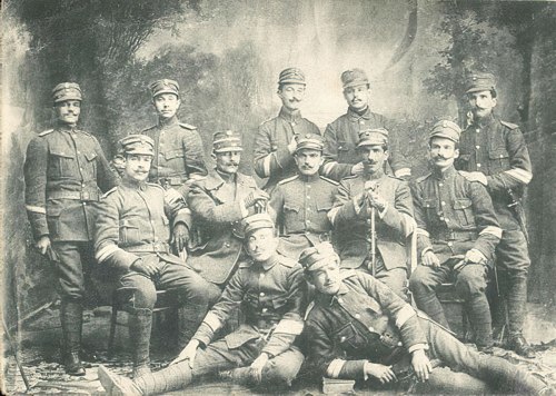 Από τους Βαλκανικούς πολέμους (1912) στη Μικρασιατική καταστροφή (1922) » Επιστολικό δελτάριο: Φωτογραφία Αξιωματικών και Υπαξιωματικών του λόχου Γεφυροποιών (Μηχανικό).