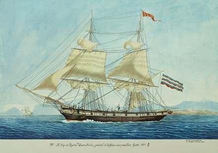 «Ο Θεμιστοκλής», υδατογραφία, έργο του Αντωνίου Ε. Κριεζή (1872-1944). Αντίγραφο από έργο του Antoine Roux που φιλοτεχνήθηκε στη Μασσαλία το 1811. Ο πίνακας απεικονίζει το μπρίκι Θεμιστοκλής της νήσου Ύδρας με ρωσική σημαία. Ναυτικό Μουσείο της Ελλάδας.