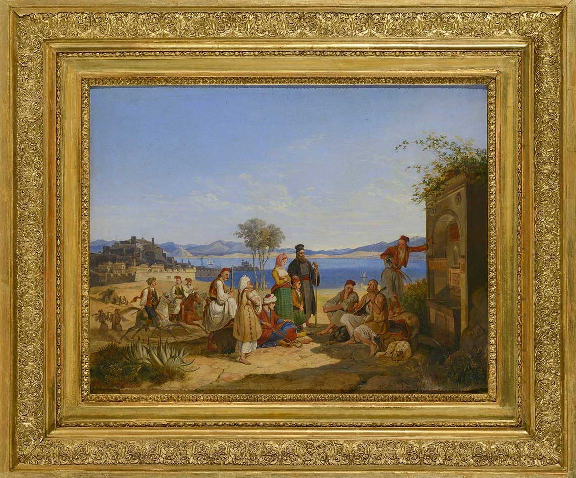 Σκηνή στο απελευθερωμένο Ναύπλιο, 1831. Carl Wilhelm Freiherr von Heideck ή Heidegger (Εϊδεκ Κάρολος Γουλιέλμος, 1788-1861). Ελαιογραφία σε μουσαμά