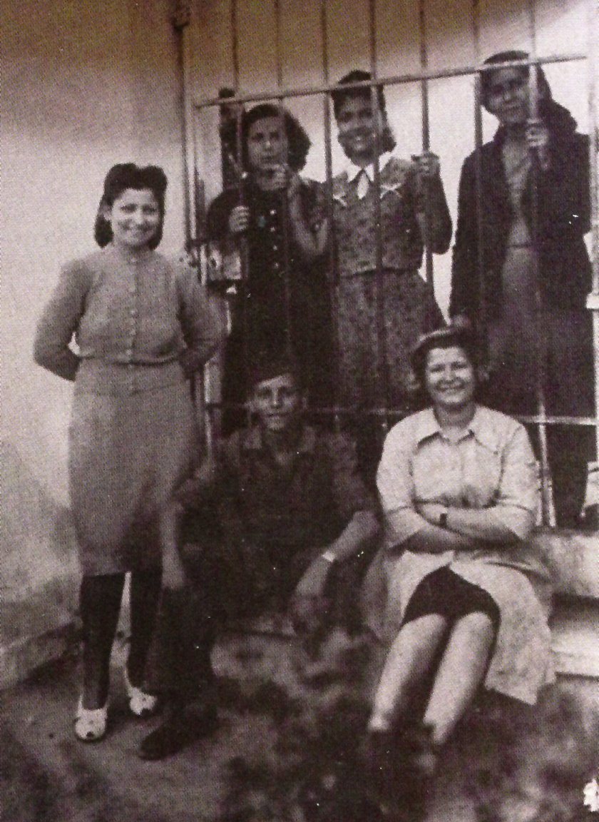 Η Μαίρη Παριανού στο Εμπειρίκειο Αναμορφωτήριο (πρώτη αριστερά πίσω από τα κάγκελα).