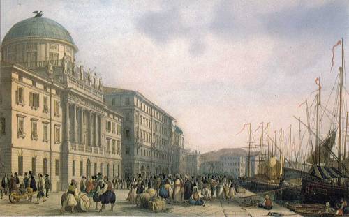 Το Παλάτσο Καρτσιώτη (Palazzo Carciotti), στην Τεργέστη, το οποίο κτίστηκε από τον πλούσιο Έλληνα έμπορο Δημήτριο Καρτσιώτη (1741-1819), με καταγωγή από τον Άγιο Ιωάννη Αρκαδίας. Έργο του ζωγράφου Giovanni Pividor (Τζιοβάνι Πιβίντορ), περ. 1840.