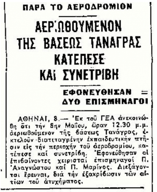 Μαρίνος Πέτρος (1928-1964) » Αναγγελία του Αεροπορικού δυστυχήματος 19-45-52 Σελίδα Πεσόντος – ΜΑΡΙΝΟΣ ΠΕΤΡΟΣ του Κωνσταντίνου – Επισμηναγός