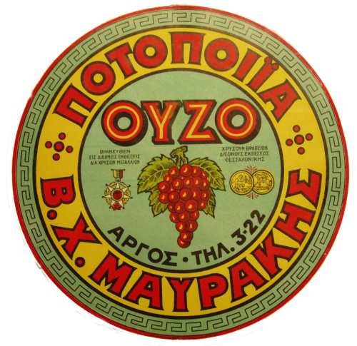Πνευματοποιείον – Πνευματοπωλείον Μαυράκη » Ετικέτα ούζου της ποτοποιΐας Χ. Μαυράκη.