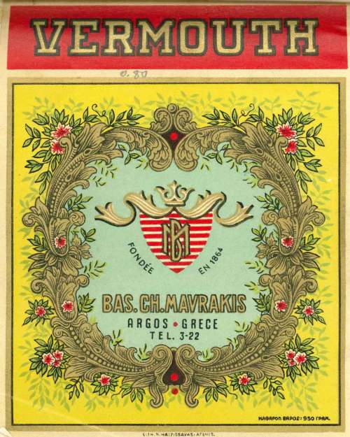 Ετικέτα Βερμούτ ποτοποιΐας Μαυράκη.