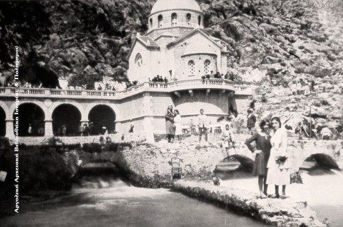 Κεφαλάρι. Οι πηγές του Ερασίνου και ο Ιερός Ναός της Ζωοδόχου Πηγής, χωρίς το καμπαναριό, περ. 1930.