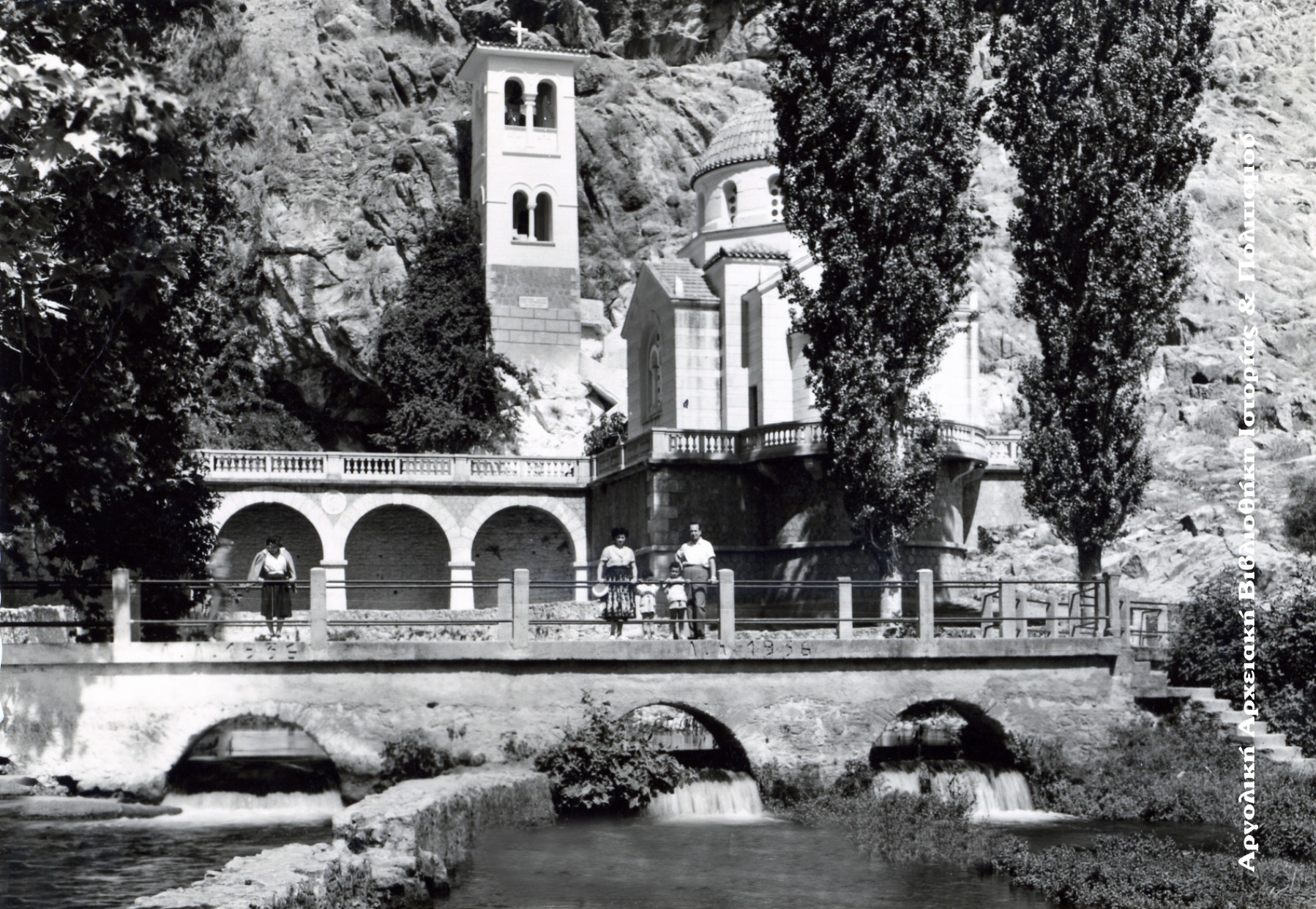 Κεφαλάρι Άργους. Ο Ιερός Ναός της Ζωοδόχου Πηγής Κεφαλαρίου με το καμπαναριό, δεκαετία 1960