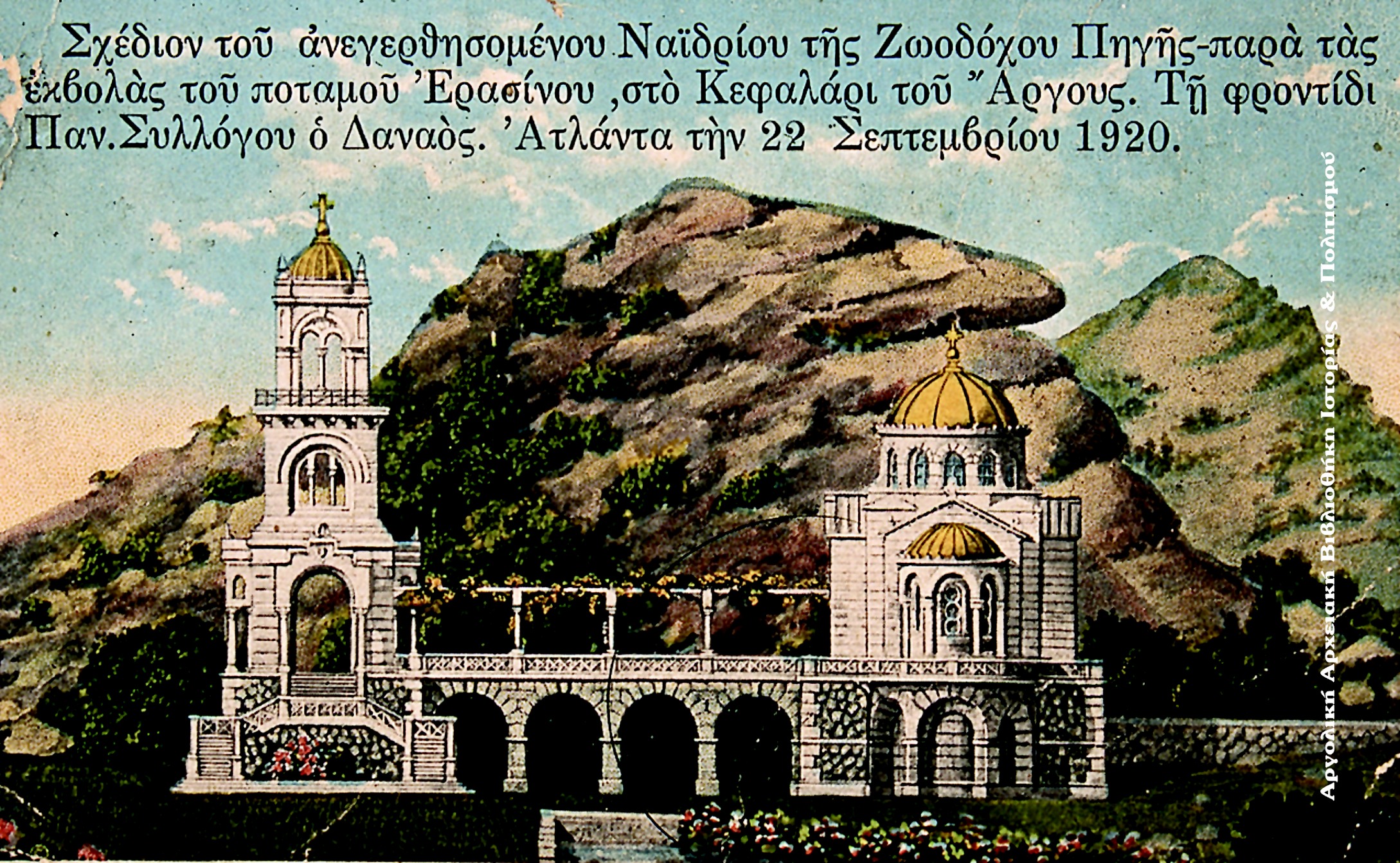 Ταχυδρομικό δελτάριο, με το αρχικό σχέδιο για το νέο Ναό του Κεφαλαρίου, τυπώθηκε στην Ατλάντα των Η.Π.Α., 1920.