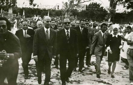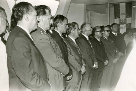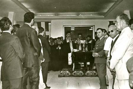 Ο επίσημος προσκεκλημένος Υπουργός Κοινωνικών Υπηρεσιών Ιωάννης Λαδάς στο μικρόφωνο. Πίσω αριστερά του ο Ιατρός Ευάγγελος Κολιγλιάτης με το γιό του Αθανάσιο, που σήμερα υπηρετεί σαν ακτινοφυσικός στο Νοσοκομείο «Άγιος Σάββας».