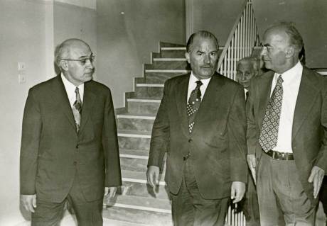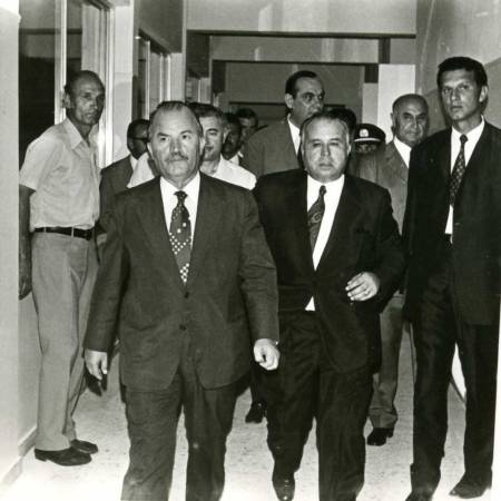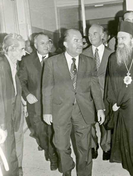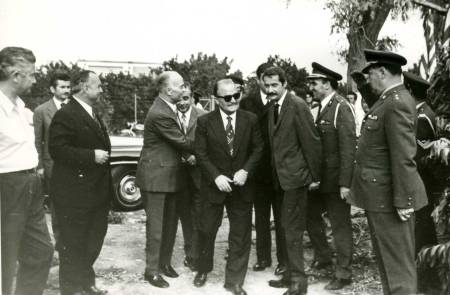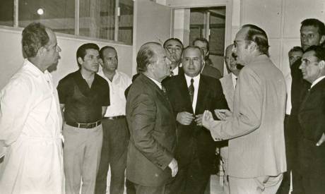 Αριστερά ο βοηθός του Ακτινολογικού Εργαστηρίου Παναγιώτης Κούσουλας. Δίπλα του ο Αργυροχρυσοχόος Κίμων Φλώκος. Στον Υπουργό Ι. Λαδά απευθύνεται με έντονο τρόπο ο Διευθυντής του Ακτινολογικού Εργαστηρίου Ανδρέας Οικονόμου. Πίσω από τον κο Οικονόμου, παρακολουθούν με ενδιαφέρον οι Αριστοτέλης Παναγιωτόπουλος και μπροστά του ο Διευθυντής της Παθολογικής κλινικής Ευάγγελος Κολιγλιάτης.