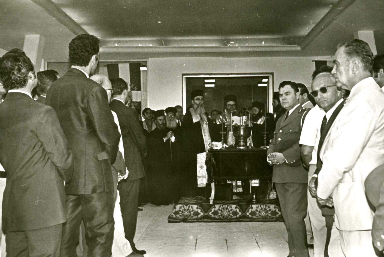 Ο Μητροπολίτης Αργολίδος Χρυσόστομος Β΄, Πρόεδρος του Κληροδοτήματος Δεσμίνη – Καλλιοντζή, τελεί τον αγιασμό των εγκαινίων. Στα δεξιά του ο Πρωτοπρεσβύτερος Ευάγγελος Στασινόπουλος, Πρόεδρος του Συλλόγου Αργείων «ο Δαναός». Στο άκρο δεξιό της φωτογραφίας ο Γεώργιος Μητροσύλης, μετέπειτα ιερέας του ναού της Αγίας Τριάδος. Δίπλα του (με τα γυαλιά) ο ιερέας Κωνσταντίνος Σχοινοχωρίτης, ιερέας τότε του ιερού ναού της Κοιμήσεως της Θεοτόκου. Ο Κων/νος Σχοινοχωρίτης είναι ο πατέρας του Ορθοπαιδικού Ιατρού του Νοσοκομείου Άργους, Νικόλαου Σχοινοχωρίτη.