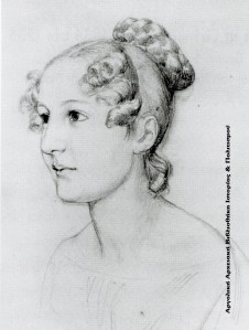 Η Bettina von Savigny σε ηλικία περίπου 15 χρόνων. Σκίτσο από το τετράδιο σχεδίων που κατείχε η ίδια. Σώζεται στην Πανεπιστημιακή και Κρατική Βιβλιοθήκη της γερμανικής πόλης Münster.